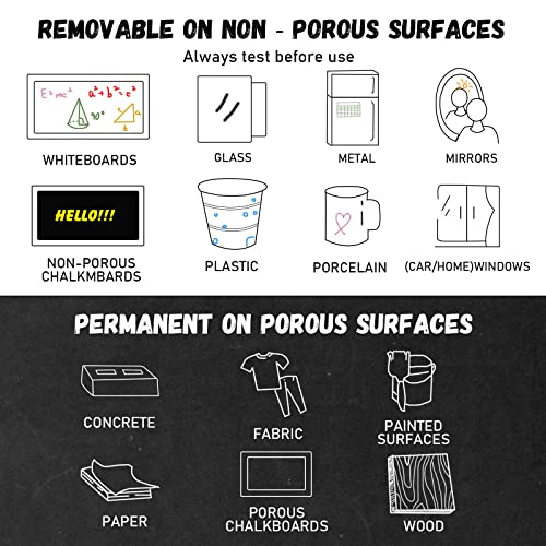 Segni su più superfici: le nostre penne a gesso liquido sono la scelta migliore per creare su più superfici, come finestre, specchi, plastica, tazze in ceramica, lavagne da frigorifero, etichette per lavagne, barattoli, menu di ristoranti e così via