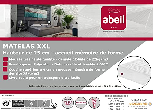 Abeil 15000001671 Materasso XXL Memory, Poliestere, Bianco, Grande, 140 x 190 cm