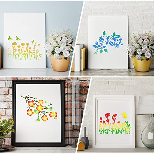 Stencil di fiori: 8 modelli di fiori primavera/estate includono fiori di ciliegio, vite, fiori selvatici naturali. C'è una vasta gamma di stencil floreali per dipingere legno, pareti, mobili, tessuti, opere d'arte, artigianato, progetti fai da te e altro ancora.