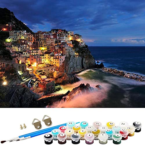 ABEUTY Dipingi fai da te con numeri per adulti e bambini, City Beach Night Starry Sky Castle 40,6 x 50,8 cm numero pittura artistica terapia