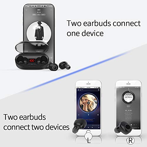 [Condividi libertà] L' auricolare in ear bluetooth può collegare due dispositivi diversi per la chiamata o la musica, il che significa che puoi usarlo separatamente con la persona che ami o amico e naturalmente puoi anche usarne due. Nessun cavo: goditi i veri auricolari senza fili.
