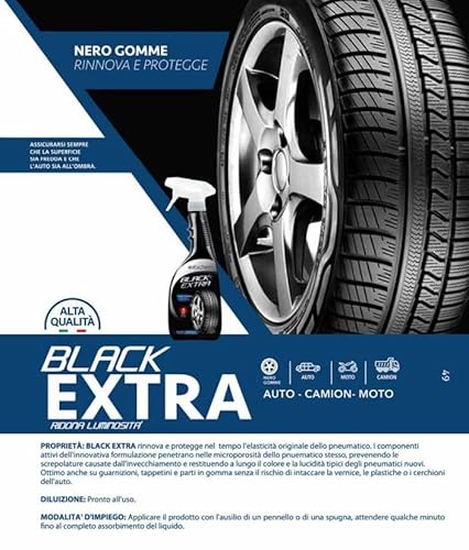 ✅Nero Gomme 750ml: Black Extra rinnova e protegge l'elasticità del pneumatico ideale anche per guarnizioni e parti in gomma
