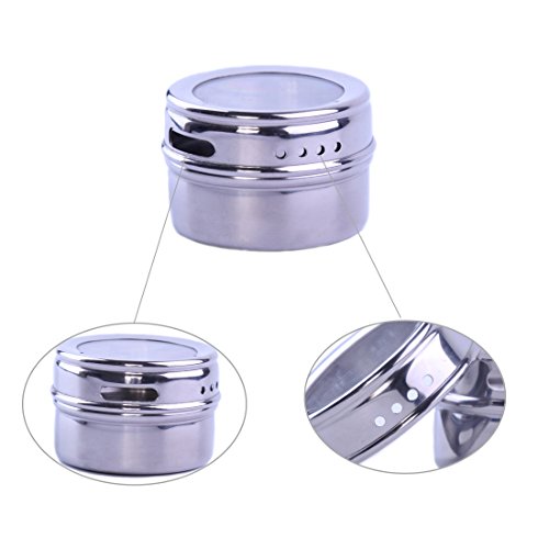 Abimars, contenitori per spezie in acciaio inox con coperchio trasparente e fondo magnetico, si attaccano al frigorifero e ai fornelli, Acciaio inossidabile, Silver, 12 pezzi