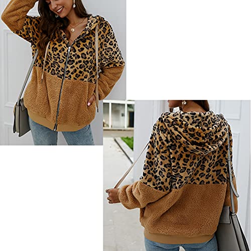 ABINGOO Cappotto Donna Casual Felpa con Cappuccio Giacca Leopardo Invernale Cerniera Giacche e Cappotti Vello Caldo Hoodies Outwear,Caqui,L