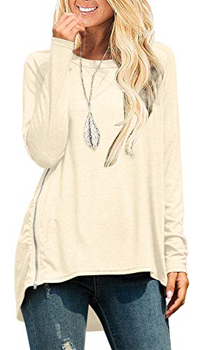 Caratteristiche - Ci sono 2 chiusure lampo nella spaccatura laterale, che sembra più alla moda su di te. L'esclusivo design a orlo alto e basso può coprire l'anca, ideale per nascondere il sedere. Tinta unita e girocollo, caratterizzato da maniche lunghe raglan, rende la camicia apparentemente semplice non più così semplice.