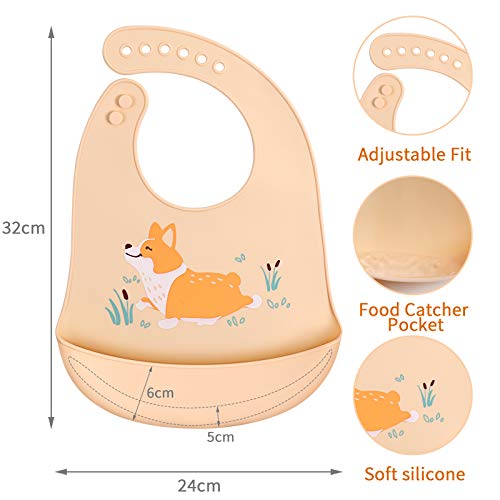ABirdon 4 Pezzi Bavaglino Silicone, Impermeabile, Facili da Pulire, Lavabile, BPA Free, 6 Dimensioni Regolabili Bavaglini Silicone Morbido con Raccoglipappa per Ragazzi e Ragazze