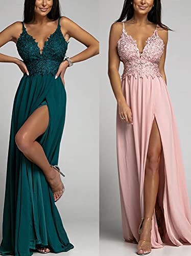 Abiti da Donna Eleganti in Pizzo Abiti da Sera Senza Schienale Abiti da Sposa Abiti da Cerimonia Abiti da Sera Lunghi Abiti da Damigella d'Onore con Scollo a V (Rosa,S)