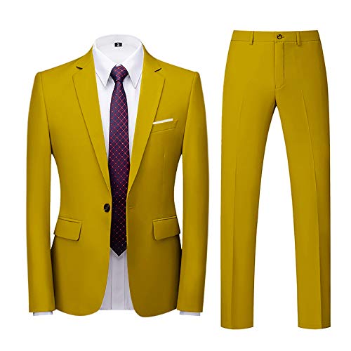 Abiti da Uomo 2 Pezzi Abito da Sposa Slim Fit Giacca Bottone Formale Giacche Pantaloni ( XL,1oro )