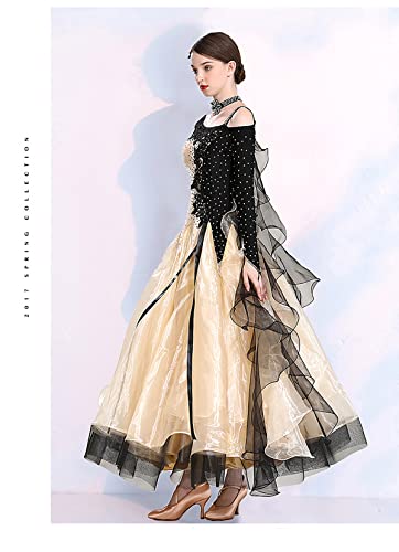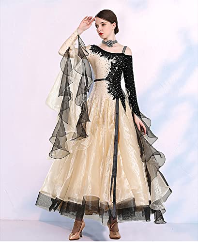 Abito da Ballo da Sala per Donna Abiti da Ballo Moderno Valzer Tango Flamenco Abiti da Spettacolo a Maniche Lunghe in Pizzo (M,Apricot)