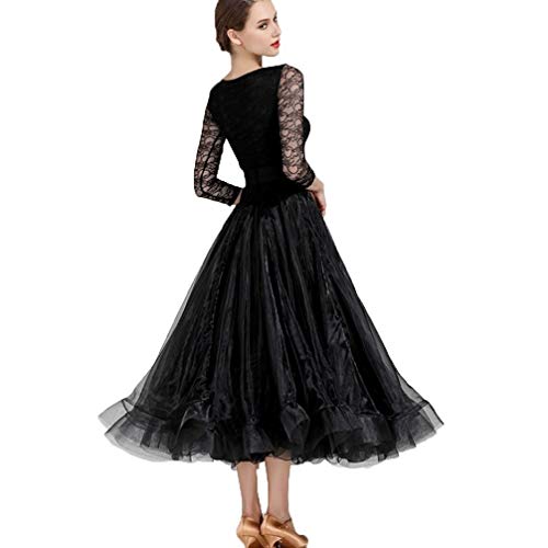 Fhxr Abito da Ballo per Donna, Abito da Ballo per Sala da Ballo Liscio da Uomo Moderno di Valzer Tango Abito da Ballo Standard Maniche Lunghe Costumi di Prestazione (Colore: Nero, Size: XXL)