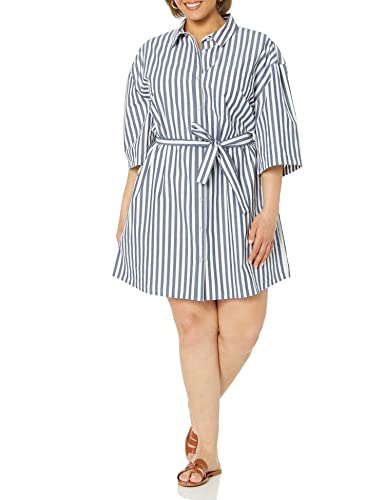 The Drop, mini abito a camicia Dakota, da donna, con cintura, blu marino / bianco, M