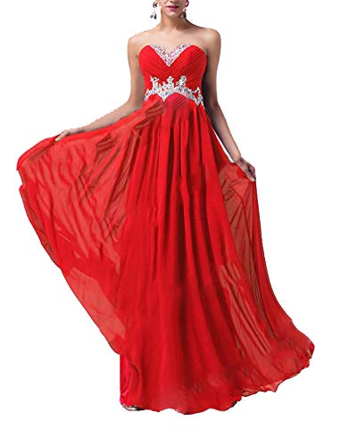 Abito Cerimonia Donna - Vestiti Lunghi Ragazza in Chiffon - Eleganti per Sposa Cerimonia e Damigella - Fashion Moderno da Discoteca Party Sera Ballo o Festa (3XL, Rosso)