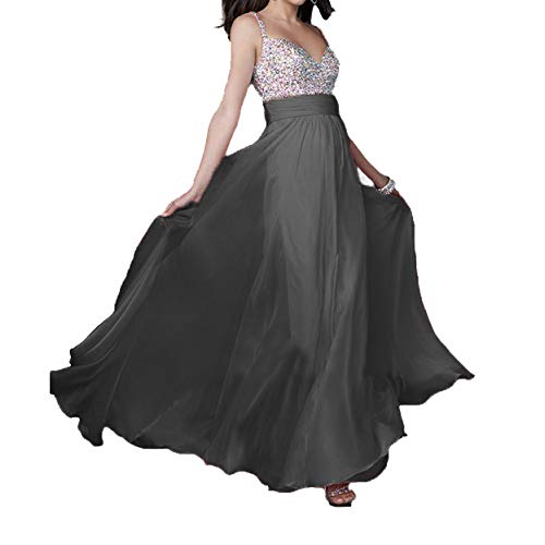 Abito Cerimonia Donna - Vestiti Lunghi Ragazza in Chiffon - Eleganti per Sposa Cerimonia e Damigella - Fashion Moderno da Discoteca Party Sera Ballo o Festa (Grigio, M)