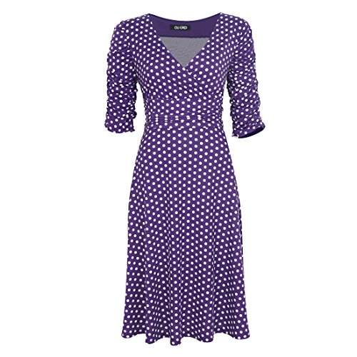 Scollo a V profondo, vita impero, design increspato su vita e manica, lunghezza al ginocchio, chiusura a trazione, vestibilità e abito svasato