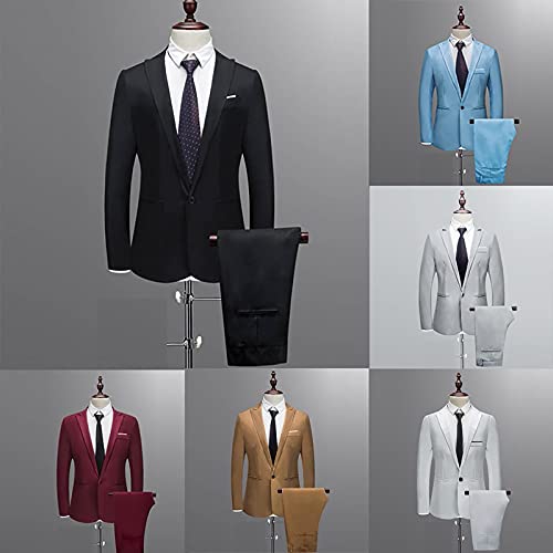 YYDZ Abito Uomo Completo Elegante, 2 Pezzi Blazer Uomo Giacca Elegante + Pantaloni Giacca Elegante Uomo Blazer Vestito da Cerimonia Slim Fit Abiti Completi da Uomo Tinta Unita Tuta Uomo Completa