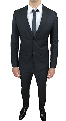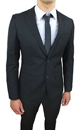 Abito Completo Uomo Sartoriale Nero Slim Fit Aderente Nuovo Elegante Cerimonia