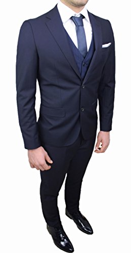 Abito Completo Uomo Sartoriale Blu Elegante con Gilet, Cravatta e Pochette in Coordinato (50)