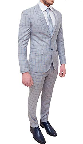 Abito Completo Uomo Sartoriale Grigio Quadri Slim Fit Elegante Cerimonia (56)