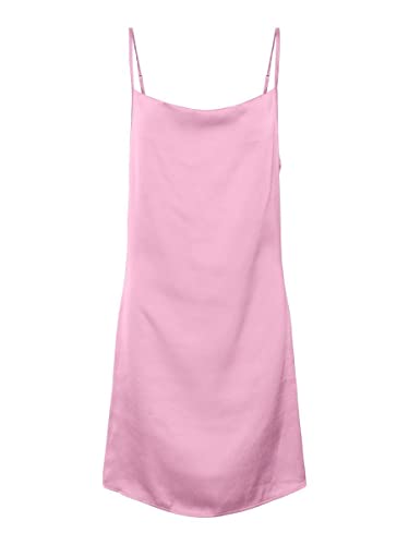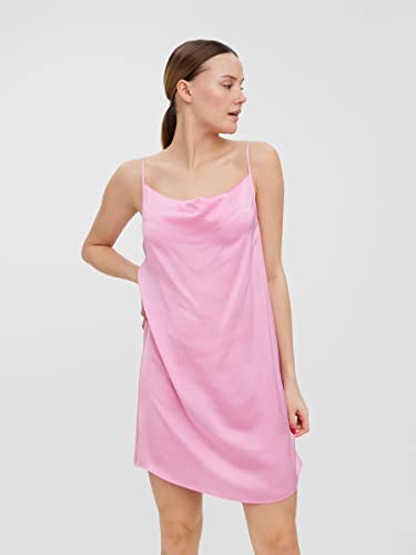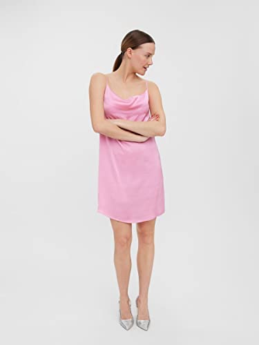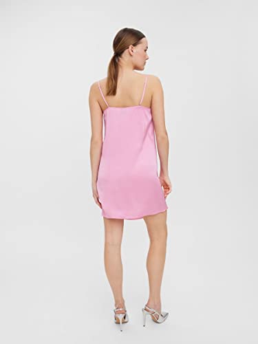 VERO MODA Abito corto da donna con spalline in raso, Prism Pink, L
