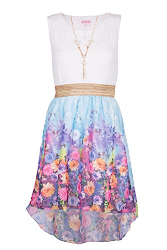 Abito Corto Senza Maniche in Pizzo, con Motivo Floreale, 3-13 Anni