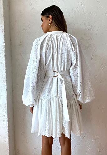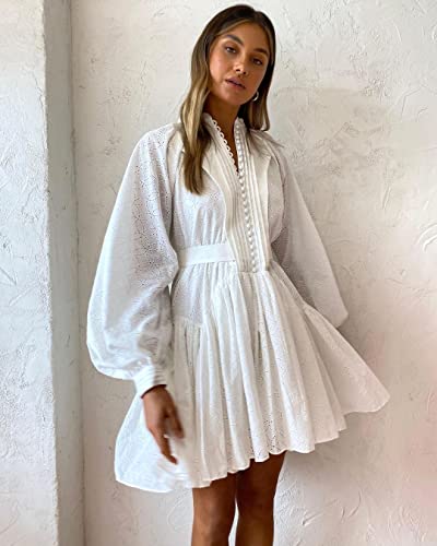 Manica lunga, girocollo, vita alta, motivo floreale traforato all'uncinetto, scava fuori, un elegante abito a pieghe pieghettato che dovresti tenere nel tuo guardaroba