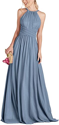 N/ C Abito da damigella d'onore Halter pieghettato senza maniche una linea lungo formale abiti da sera, Blu polvere., 52