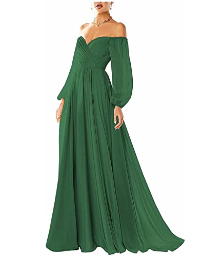Abito da sera da donna, linea ad A, in chiffon, a maniche lunghe, da ballo, da damigella d'onore, da festa, verde, 48