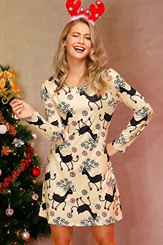 For G and PL Ugly - Abito da donna a maniche lunghe, con stampa natalizia, taglie S-XXL, Renna, XL