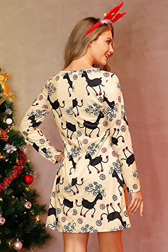 Stile: questo abito da donna a maniche lunghe con stampa natalizia è elegante e retrò allo stesso tempo ed è adatto sia per feste di Natale che per l'uso quotidiano