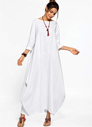 Abito Lungo da Donna Marocchino Caftano Abaya Dubai Musulmano Arabo Islamico Indonesia Vestito Solido Manica A Mezza Tinta Femme, Bianco, XXL