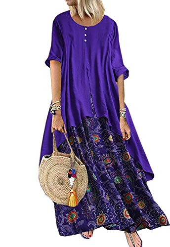 Abito lungo da donna lungo sciolto lungo kaftano casual per le donne Boho abito comodo floreale lungo abito - viola - L