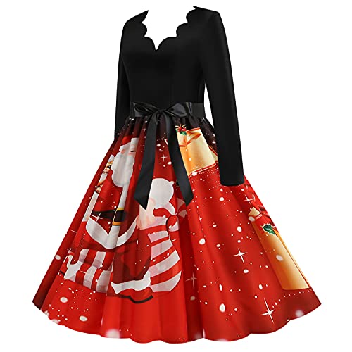 Abito da Donna Vintage a Maniche Lunghe Natalizio Anni '50 casalinga da Sera per Feste di fine Anno (XXL,2rosso)