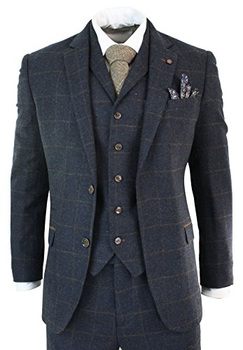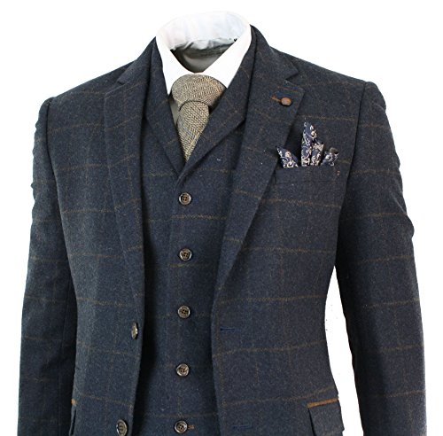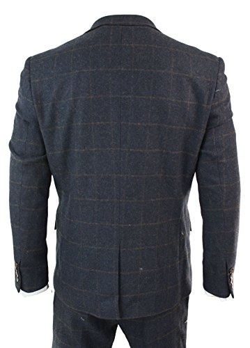 Abito Elegante 3 Pezzi da Uomo Completo in Tweed Vintage Blu Marino a Scacchi Blu Marino-Blu