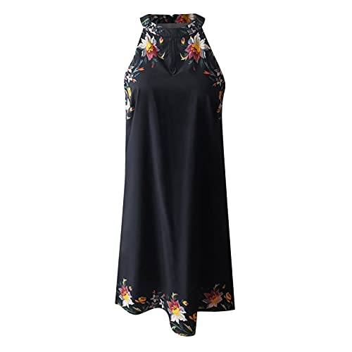 Abito Estivo Senza Maniche con Scollo a Spiaggia Boho Splice Abito da Donna con Stampa Scollo all'Americana Vestito Elegante Cocktail (Yellow, S)