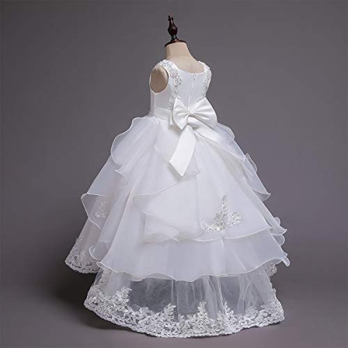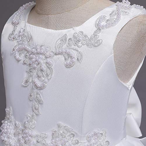 Abito Floreale per Ragazza Senza Maniche Abito da Damigella D'onore con Ricamo Floreale Principessa con Paillettes Abito da Ballo Lungo da Spettacolo di Compleanno per Matrimoni Bianco 3-4 Anni