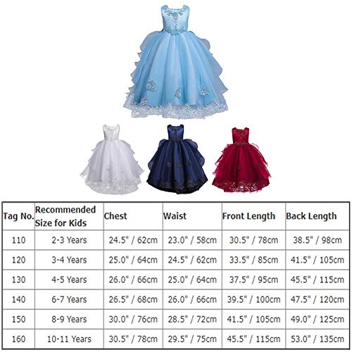 Abito da festa lungo per le vacanze di compleanno della principessa, corpetto stampato con un bellissimo motivo floreale, perline, delizioso e splendido aspetto da tutù per torta, un fiocco rimovibile (2 fibbie), puoi decorare sul retro della vita. Chiusura posteriore con cerniera nascosta, gonna in tulle che si estende dietro l'abito, design unico a coda di rondine. Il design della gonna in tulle multistrato aggiunge un look più pieno.