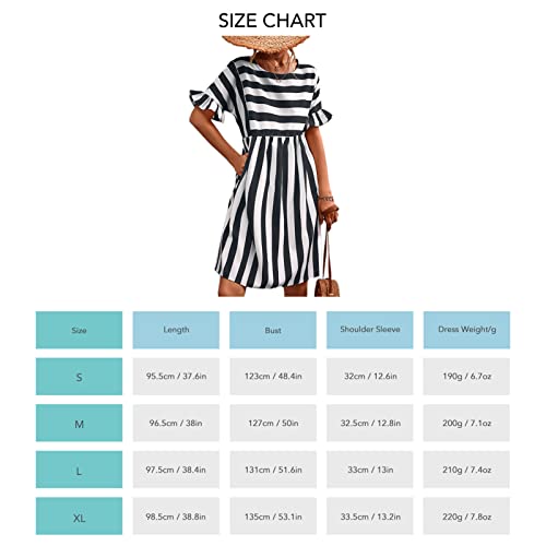 Abito Longuette da Donna Casual con Volant a Maniche Corte a Righe con Tasche Abito Casual alla Moda con Una Linea Fluida(M-Nero)