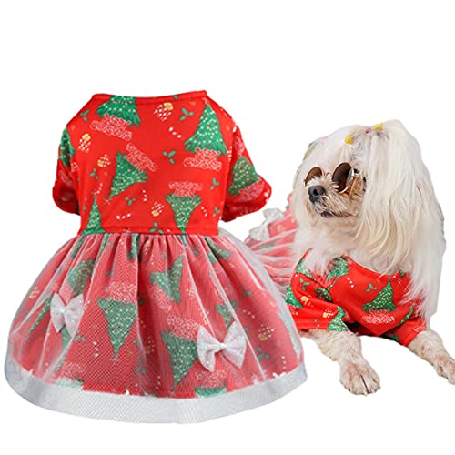 Abito natalizio per cani di piccola taglia - Abiti natalizi per cani Abito per cani di buon Natale per cani di piccola taglia | Gonna in rete rossa per abito natalizio sottile e delicato Geteawily