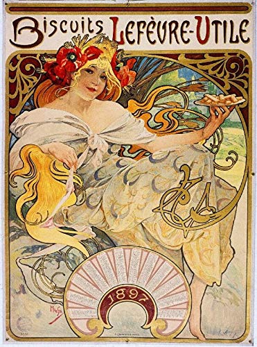 ABLERTRADE - Poster Vintage in Metallo con Scritta Biscuits Lefevre-Utile Francese Nouveau Mucha, 20,3 x 30,5 cm