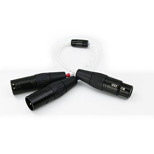 Ablet - Cavo adattatore bilanciato per cuffie HiFi, con XLR femmina 4 pin a 2 XLR maschi 3 pin, placcato argento
