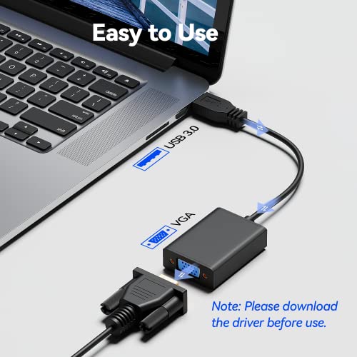 【Supporto ad alta risoluzione 1080P】 Questo adattatore USB 3.0 maschio a VGA (15 pin) femmina supporta risoluzioni fino a Full HD 1080P, 720P, 1600x1200, 1280x1024 per schermi esterni, supporta la visualizzazione a 1920x1080P a 60Hz sullo schermo quando è collegato a USB 3.0 o porta USB 2.0.