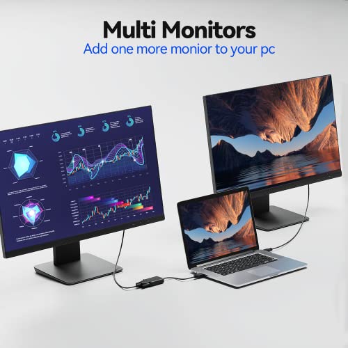 【Multi monitor】 L'adattatore display USB3.0/2.0-VGA collega un monitor, proiettore o HDTV dotato di VGA a qualsiasi porta USB disponibile su laptop, desktop o notebook per una soluzione multi-monitor o per condividere contenuti su uno schermo più grande. È necessario un cavo VGA.
