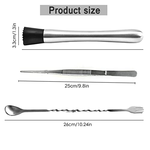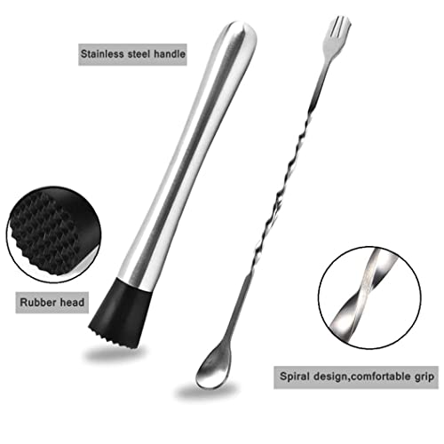 ABMRO - Set di utensili da cocktail, in acciaio inox 304, per pestelli, per miscelare i cucchiai e per il ghiaccio, per bar di casa