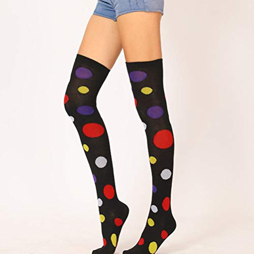 Aboofan, 1 paio di calze da clown per cosplay con motivo a pois sopra il ginocchio, calze lunghe per feste e balli (nero)