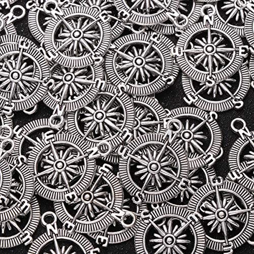 Aboofan, 50 ciondoli a forma di bussola da 2,6 g, accessori fai da te per braccialetti e collane (argento)