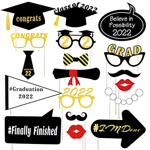 ABOOFAN 2021 Graduation Photo Props Class of 2021 Handheld Photo Booth Props with Wooden Sticks 2021 Graduation Party 18pcs