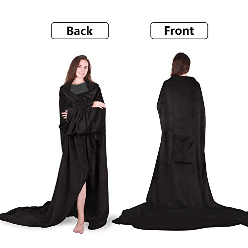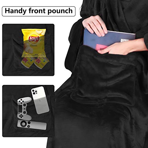 Abosea Coperta con Maniche 200 x 180 cm, Antistatica in Flanella Coperta TV con Scarpetta, per Regali di Compleanno Mamma, Sorella, Fidanzata (Nero)