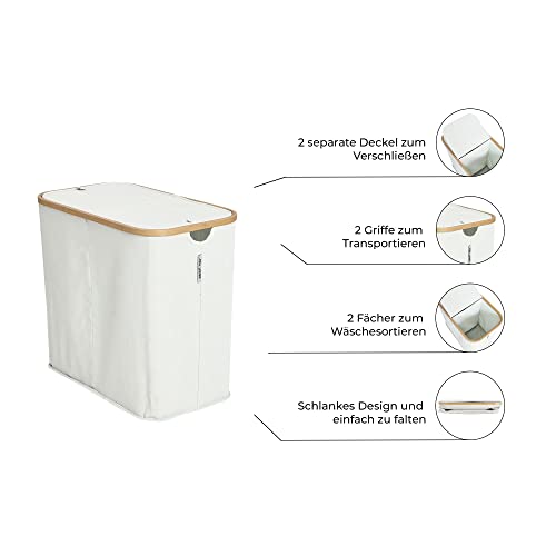 ABOUT YOU Cesto portabiancheria "Sorter" con due scomparti separati per ordinare la biancheria, pieghevole e spazioso cesto portabiancheria in bambù e tessuto