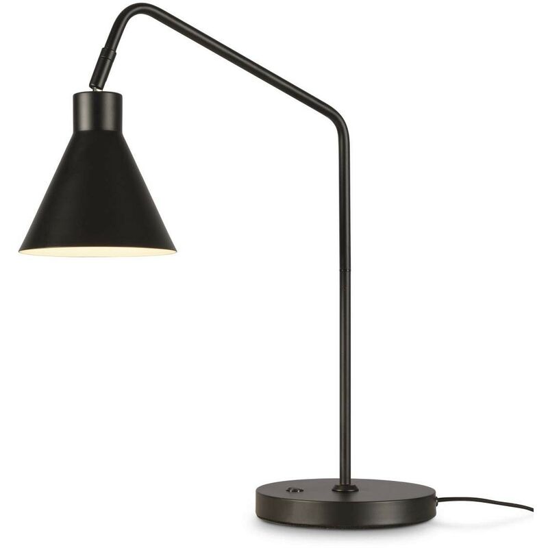La forma snella e la finitura nera della lampada da tavolo Lyon le conferiscono una certa leggerezza. Questa lampada da tavolo in ferro ha influenze contemporanee e industriali. Paralume orientabile. Cavo in tessuto, con interruttore ON/FF sulla base 1 lampadina E27 max 40W NON INCLUSA IP20 Lunghezza cavo elettrico 180 cm Dimensioni: L 50 cm, H 55 cm Dimensioni base: Diametro 20 cm, H 2,5 cm