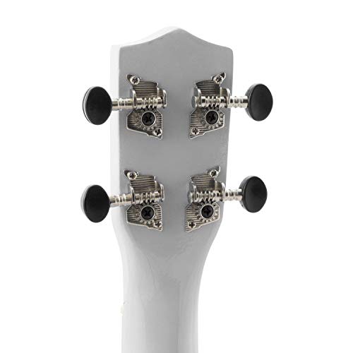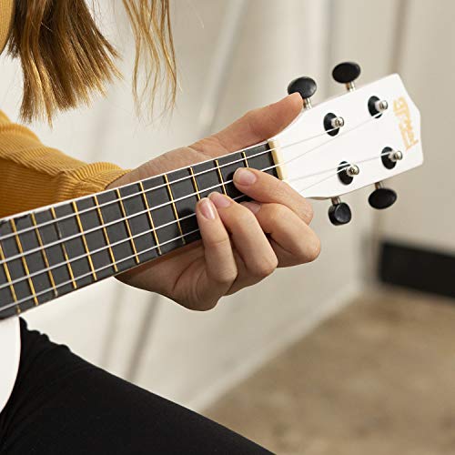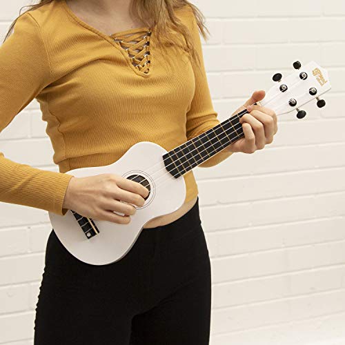 Mad About SU8-WH Ukulele soprano in bianco con custodia morbida, plettro e corde di ricambio, Ora dotato di corde in carbonio nere che offrono un suono più brillante
